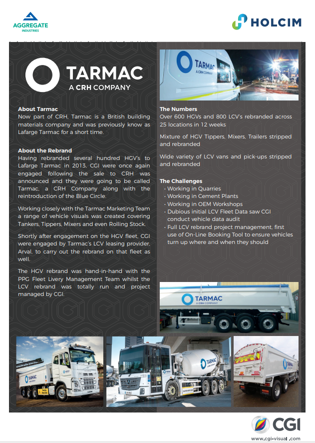 We provide comprehensive Fleet Livery Management Schemes to the UK’s three largest aggregates companies, each operating fleets in excess of 1,200 vehicles, including vans, trucks, and concrete mixers. Our service covers the full lifecycle of fleet branding  from rollout and installation to ongoing management and refresh programmes supporting nationwide operations with speed, consistency, and minimal vehicle downtime.